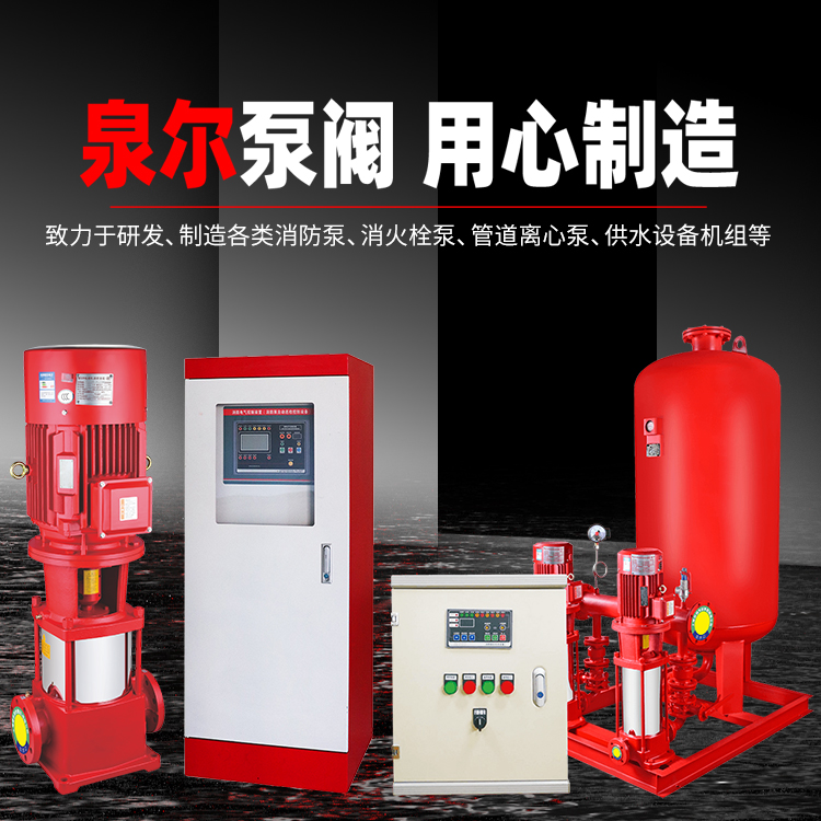 泉尔泵阀主导产品有消防泵、消火栓泵、喷淋泵、管道离心泵、立式多级离心泵、排污泵、自吸泵、潜水泵、消防增压稳压设备、无负压/恒压供水设备、污水提升装置、一体化泵站、水泵控制柜、消防控制柜、消防巡检柜等。产品被广泛应用于工厂商业严重污染废水排放、住宅区的污水排放、人防系统排水站、医院、农田灌溉、印染、设备冷却、食品、环保、化工、石油、制药、采矿、造纸、电厂、污水排放、煤油加工工业、钢铁工业、造船工业、陶瓷工业、制革工业,以及城市污水处理厂排水系统,市政工程,建筑工地等行业。